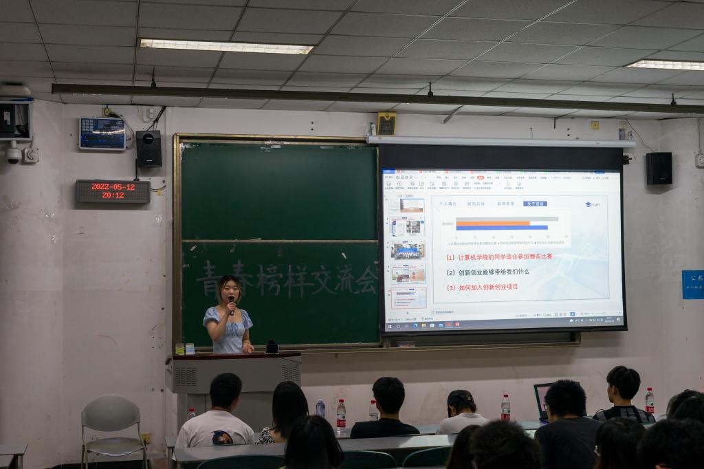 双创之星万启慧分享了有关双创比赛的内容,并向同学们推荐了一些适合计算机专业同学参加的比赛,同时鼓励同学们积极加入创新项目和团队。