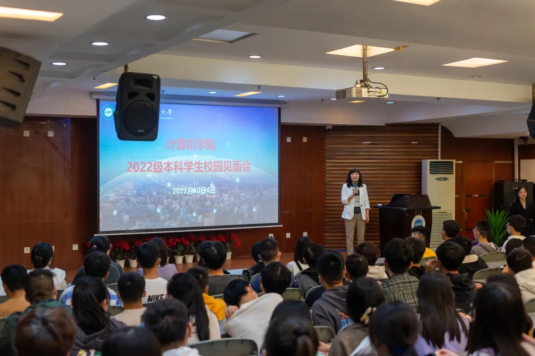 2022年10月4日晚,成都信息工程大学betway西汉姆联平台2022级本科学生校园见面会在学术报告厅举行。本次活动由罗茜老师主持,参会的老师有betway西汉姆联平台党委书记陈敏、新生辅导员罗茜以及团委书记岳旭媛,全体2022级本科生参加。