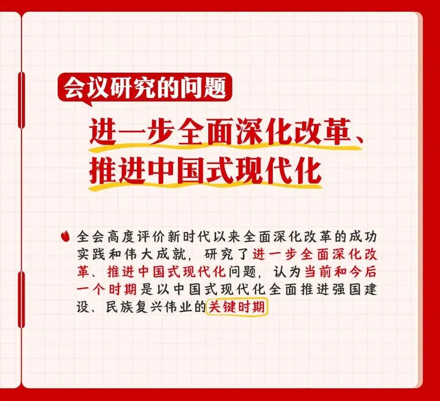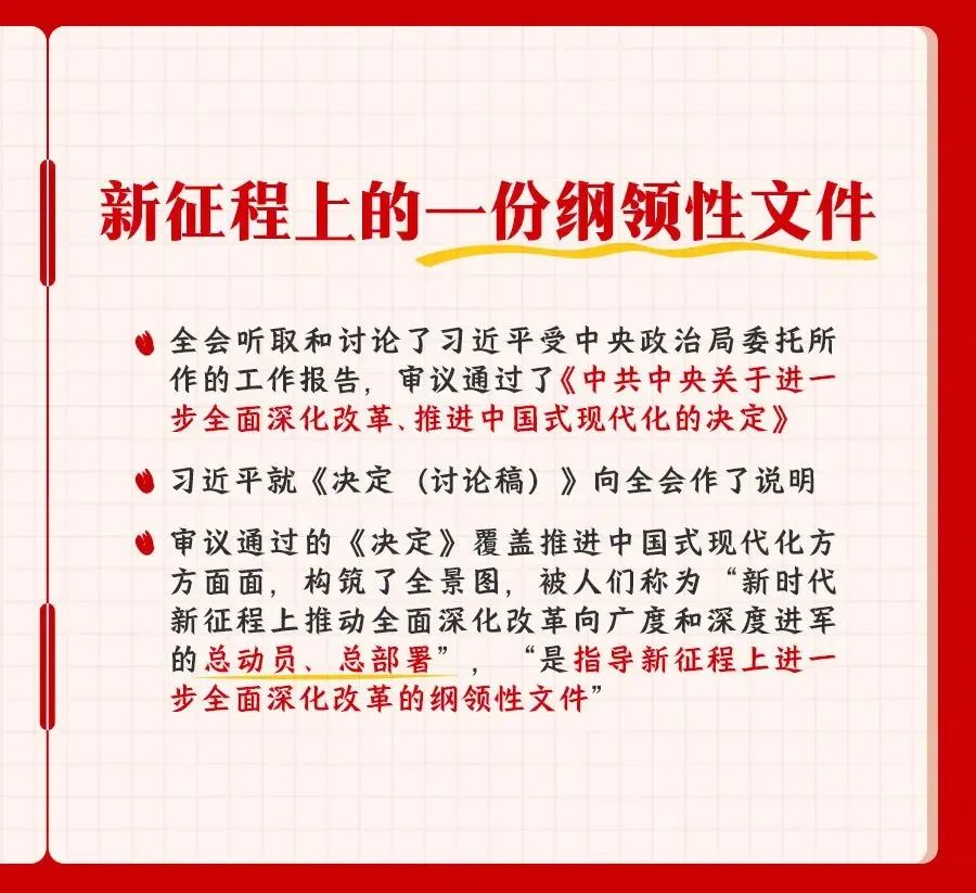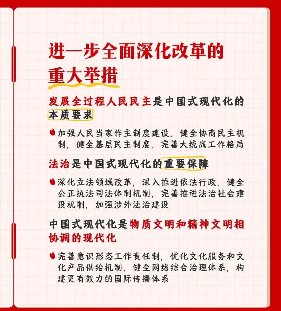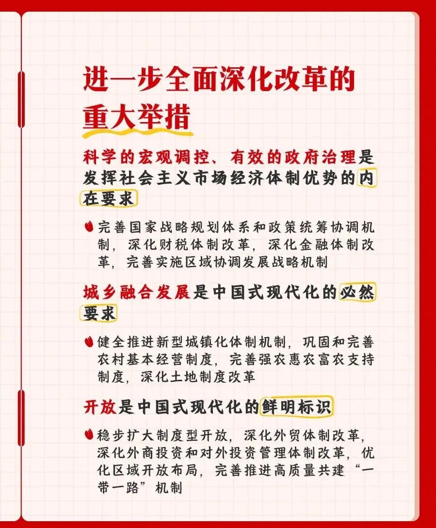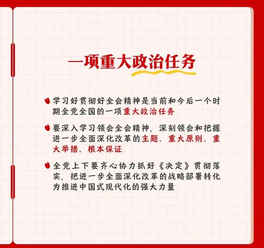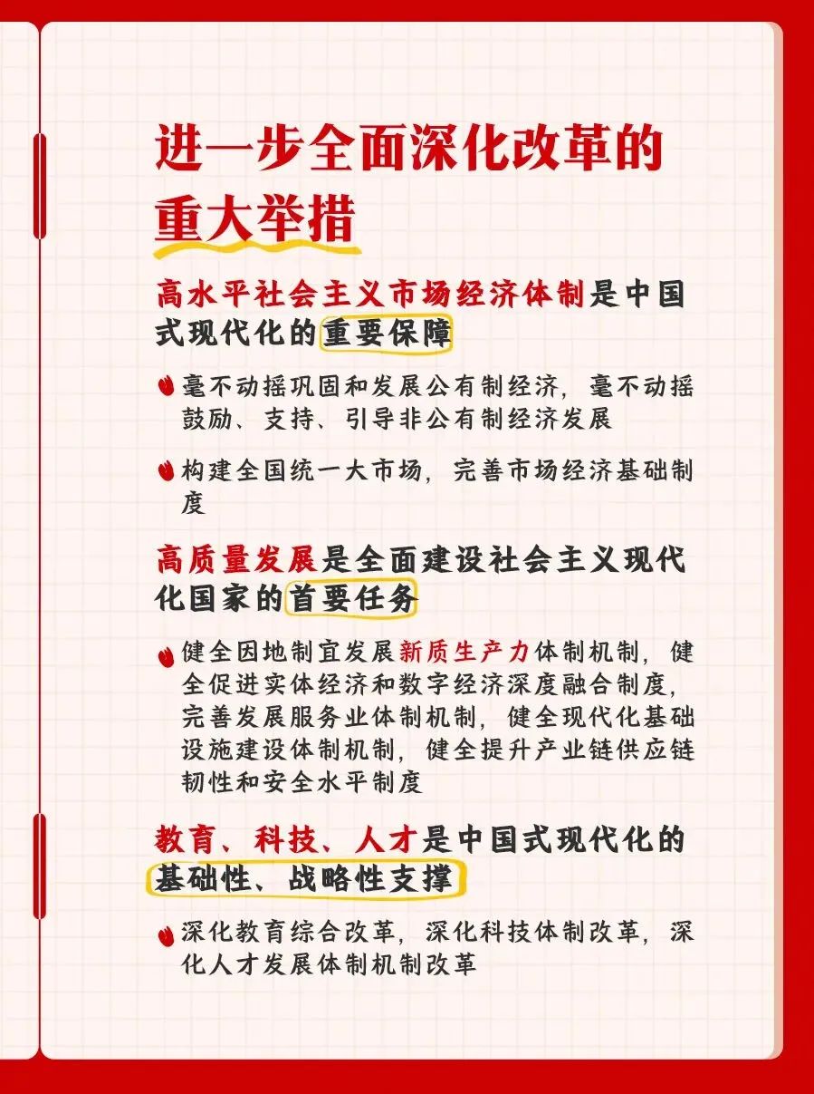 您所在的位置: 首页 >> 党建工作 >> 学习资料 >> 正文 学习资料 党的二十届三中全会精神知识点梳理 党的二十届三中全会是在以中国式现代化,全面推进强国建设、民族复兴伟业的关键时期,举行的一次十分重要的会议。进一步全面深化改革,总目标是什么?要贯彻哪些原则?紧扣中国式现代化,部署了哪些重大举措?一组笔记为你梳理。 上一条:合格党员标准 【关闭】