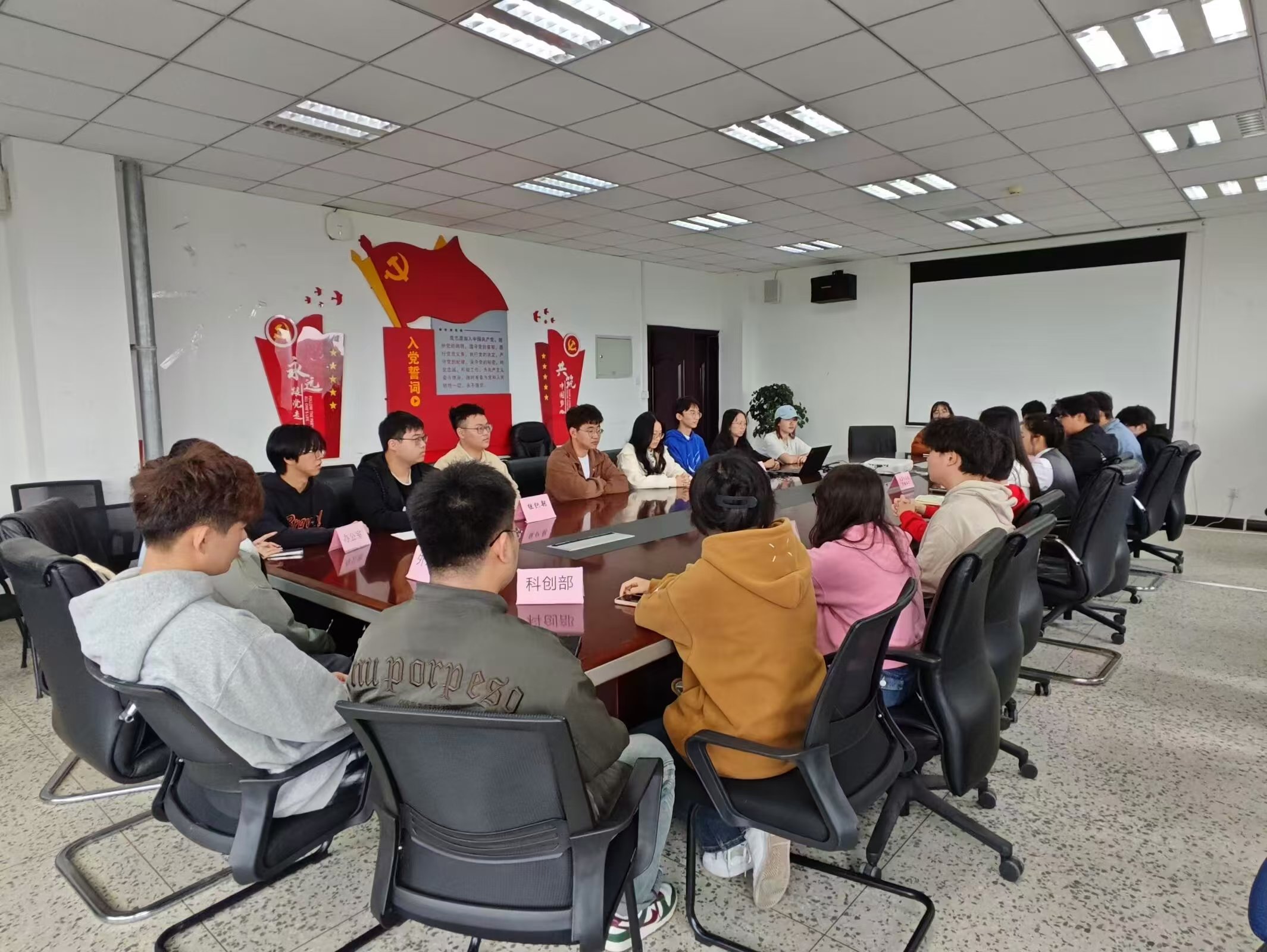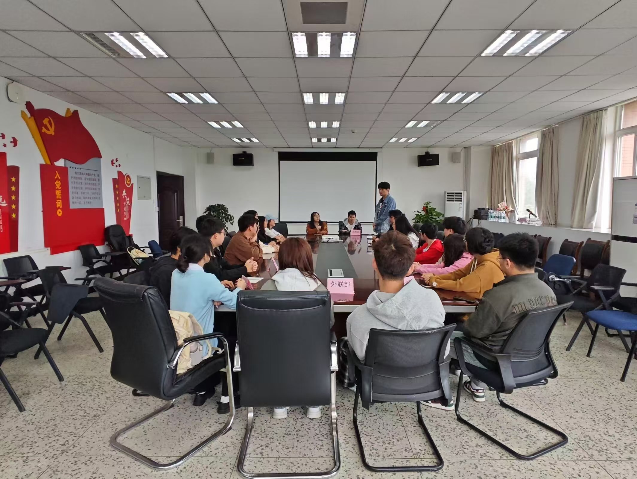 会议开始,全体学生干部依次进行了自我介绍,并逐一介绍了自己所负责的具体工作内容,这不仅增进了彼此之间的了解,也为未来工作的顺利开展奠定了坚实的基础。在学生干部的自我介绍环节结束后,两位老师肯定了大家在过去一段时间里所付出的努力和取得的成绩,随后对今后的工作提出了几点具体的建议和要求,强调了团队协作的重要性,鼓励学生干部们加强沟通,形成合力,共同推动学院学生工作的全面发展。老师们建议学生干部们要注重创新,积极探索新的工作方法,提升工作的质量和效率。此外,还提醒学生干部们要关注学生的实际需求,切实解决同学们在学习、生活等方面的问题。