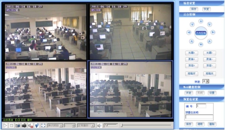 为了满足实验教学和开放的需要,每个实验室均配置了教师机屏幕及声音同传到学生机的多媒体教学系统、有线与无线扩音系统、门禁系统、用于安防和远程听课的音视频监控系统。