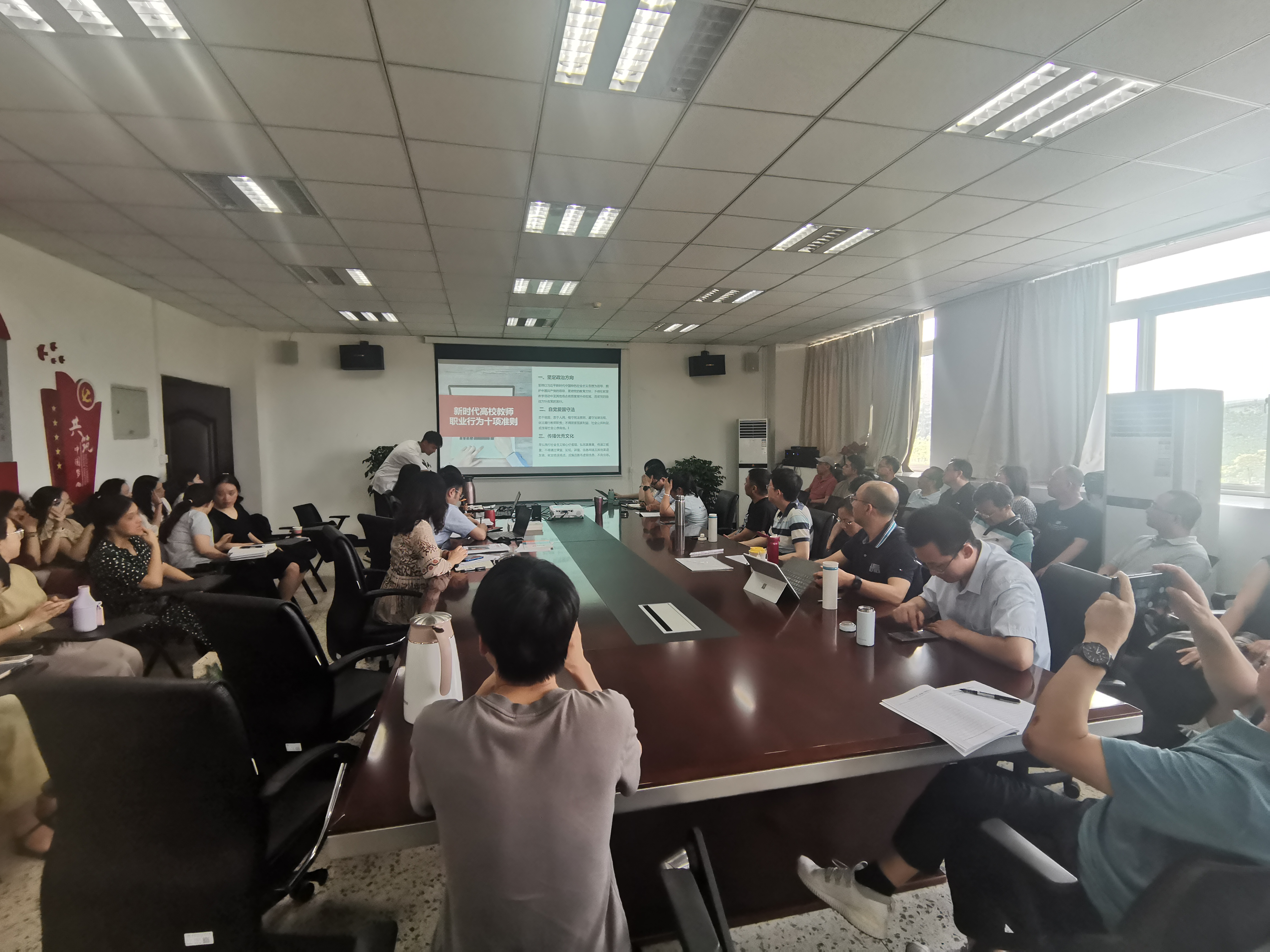 为进一步加强学院教师队伍建设,2024年5月23日下午,学院组织开展《新时代高校教师职业行为十项准则》专题培训学习。本次培训学习由教学副院长主持,学院全体教师参与培训。培训现场首先,教学副院长带领全体教师学习《新时代高校教师职业行为十项准则》,包括:坚定政治方向、自觉爱国守法、传播优良文化、潜心教书育人…[详细] 2024年05月24日